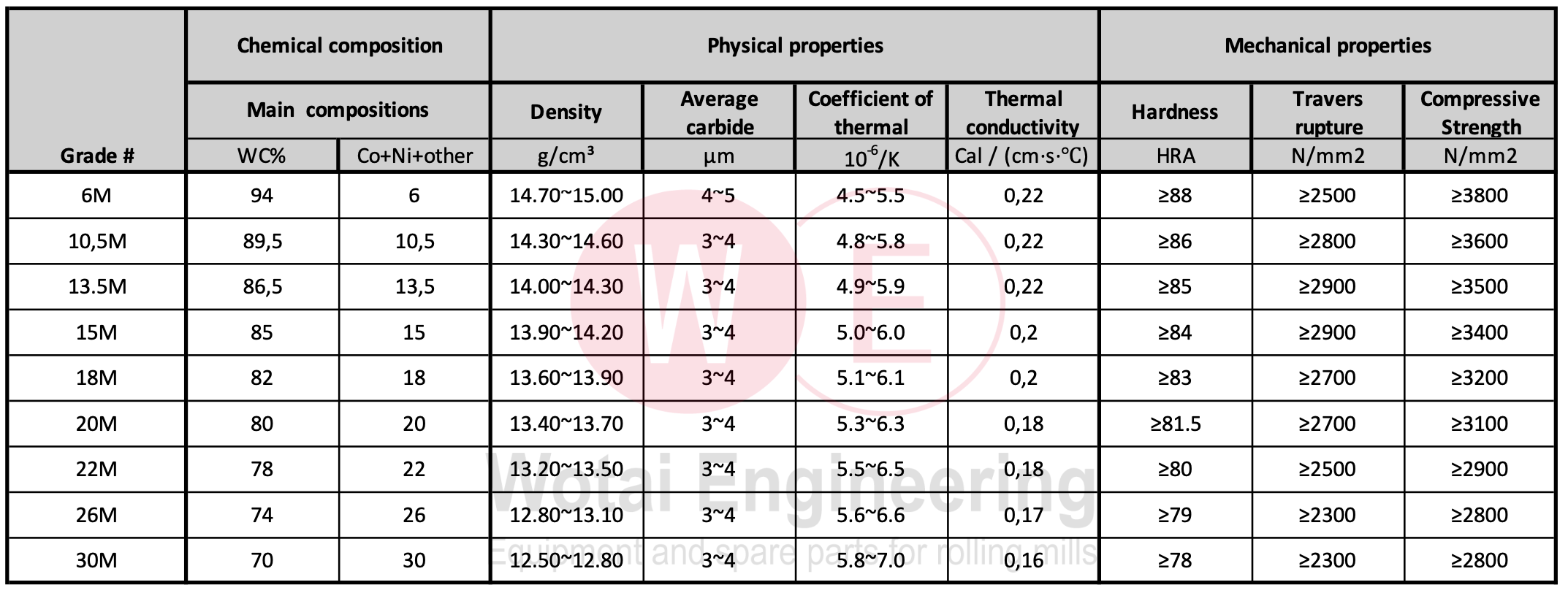 TUNGSTEN CARBIDE GRADES